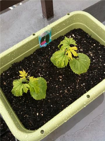 こちらはゴーヤの苗。あんまり元気がないんですよね〜。